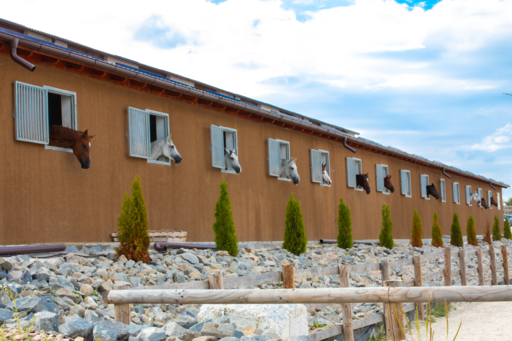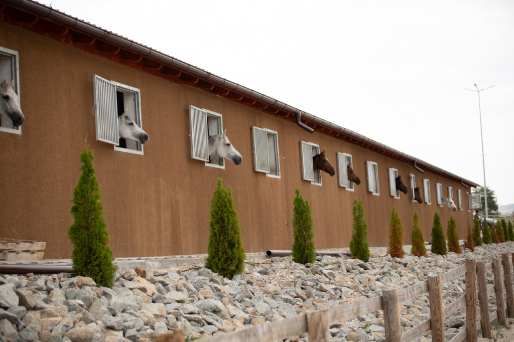 Cele două Grajduri care adăpostesc caii conține 32 de boxe, respectiv 24 boxe, spațioase , dotate cu sistem automatizat de alimentare cu apă.